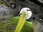 Laser on front diff. – dot 83 mm below trans. flange. This works out to be a 3.7 degree angle on the front diff. flange.