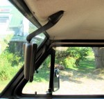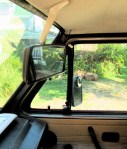 The rear overhead cabinet or AC unit in the Westfalia reduces your rear view (huh? you know what I mean) and that bugs a lot of folk, including me. There was a Samba thread on this subject with some good solutions. One was to use a baywindow van mirror stalk, there were some that had extended stalks and this is the hot ticket. I have a ’72 westy gathering moss with regular sized stalk, so I removed the rear view mirror – clockwise twist on stalk – and tried it our with the Vanagon mirror (why on earth had I not bothered to do this before you ask? I guess I’m slow).