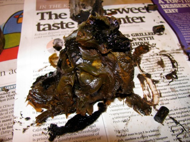 -pulled distributor cap and cleaned, above and below black plastic shield