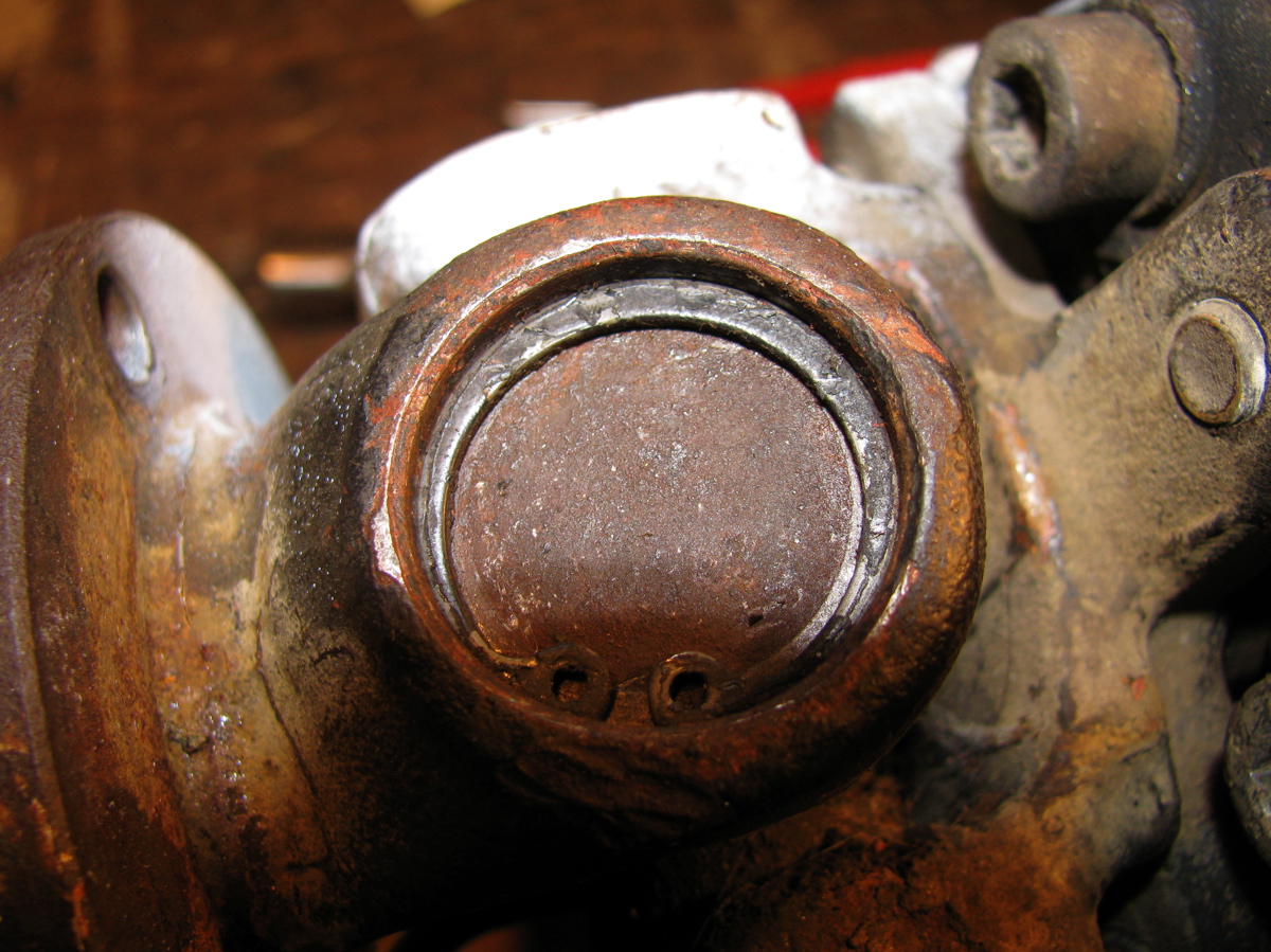 If you look closely you can see the head of a bolt in the inside face of the U-joint. This is to plug a grease nipple port and indicates the joint is not stock. Close up of that area.