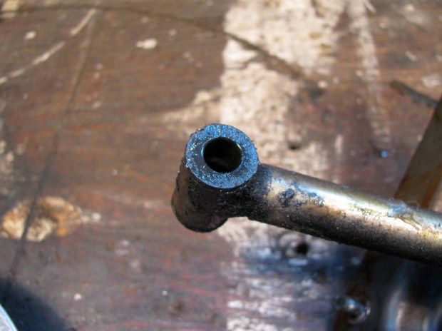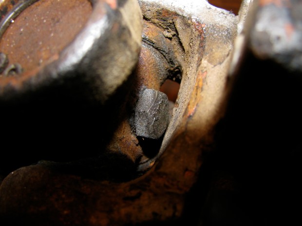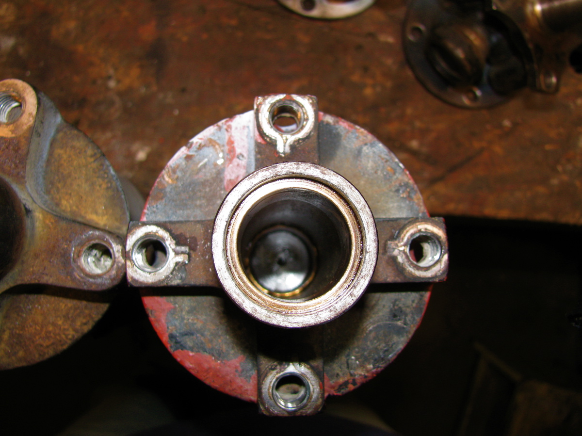 That end doesn’t look too bad either. You can see the shaft is thicker in the two spots, that’s where it rides on the internal bronze bushings in the prop shaft. Have a look in the hole in the propshaft. There’s an o-ring in a groove at the end. My other propshaft had the o-ring in a rebate, not a groove.