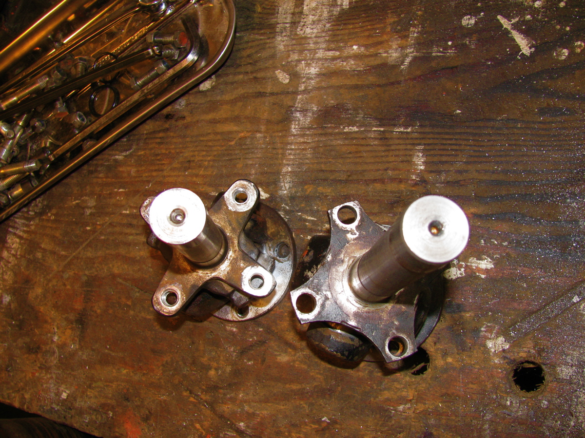 Took apart 2 stock propshafts. The rusty red one is an ’86 model, the black one is from a later van (I don’t know the year). You can see that there are a few minor differences. One important one is the machined end that houses the internal bushings. Note the thickness of the internal bushings, the newer shaft has much thinner bushings. Both units have shafts that are the same diameter so it’s the bushing housing that is a smaller diameter in the newer shaft. Also the shaft lengths differ, the older one being longer. The newer shaft has the o-ring in a groove, the older one has a rebate to hold ring.