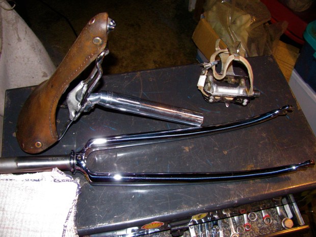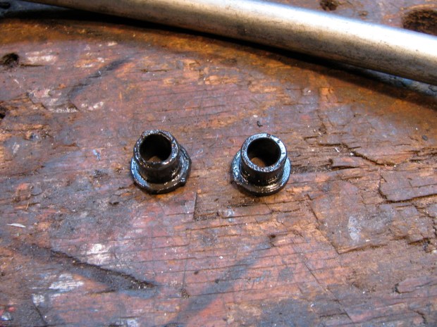 Put the upper and lower plates together and secure (in the right place using your marks) with the two 10 mm stover nuts. I risked Zinc and or Cadmium poisoning and buffed up the shift lever. The lever is inserted into the bearing assembly, the spring put on, and the collar locked down in place (there is a dimple on the shaft).