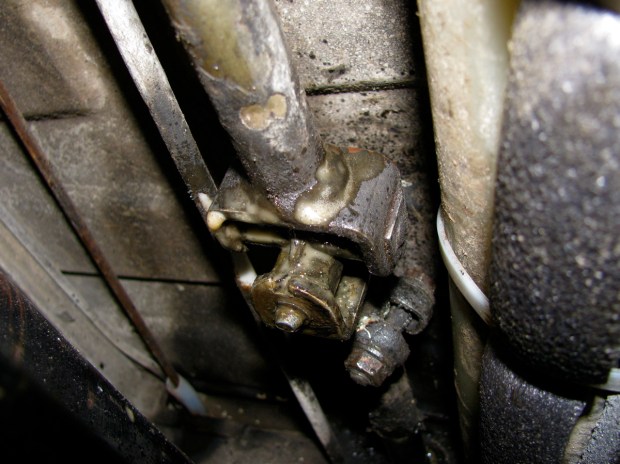 Shot of the linkage U-joint, which seems/feels pretty good, and the forward bushing which takes a bit more effort to get to.