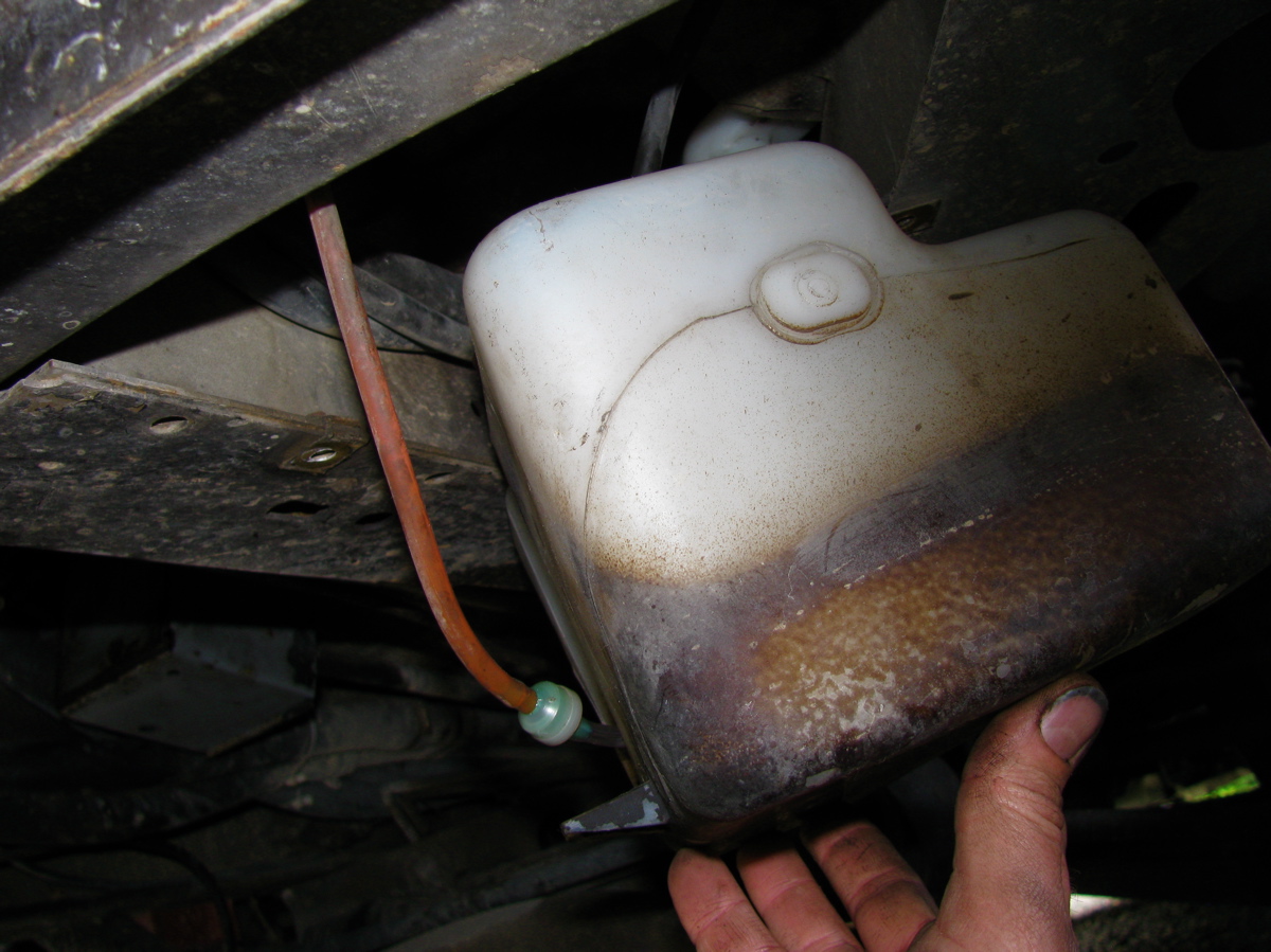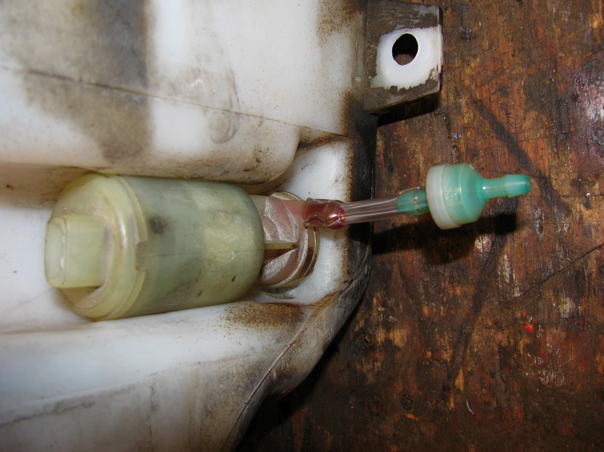 Ok, I didn’t get enough of squirming on my back today when I was working on the shift linkage, I had to drop the windscreen washer reservoir and add a little check valve (found at wreckers on a Vanagon years ago).