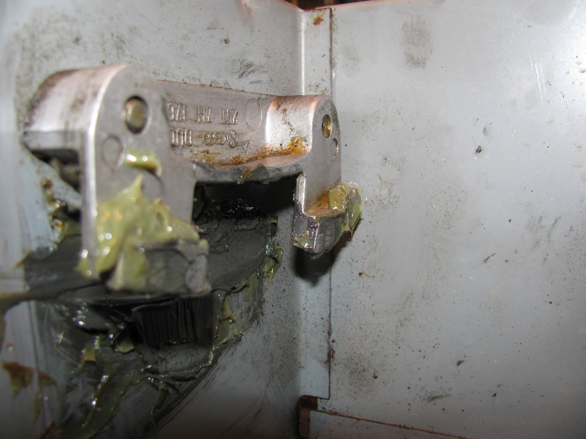 While I was in the mood, I had a look at the linkage/joint right under the gear shift lever. You know, hidden by that box above the spare tire. I had been reading this thread on the Samba and was curious.