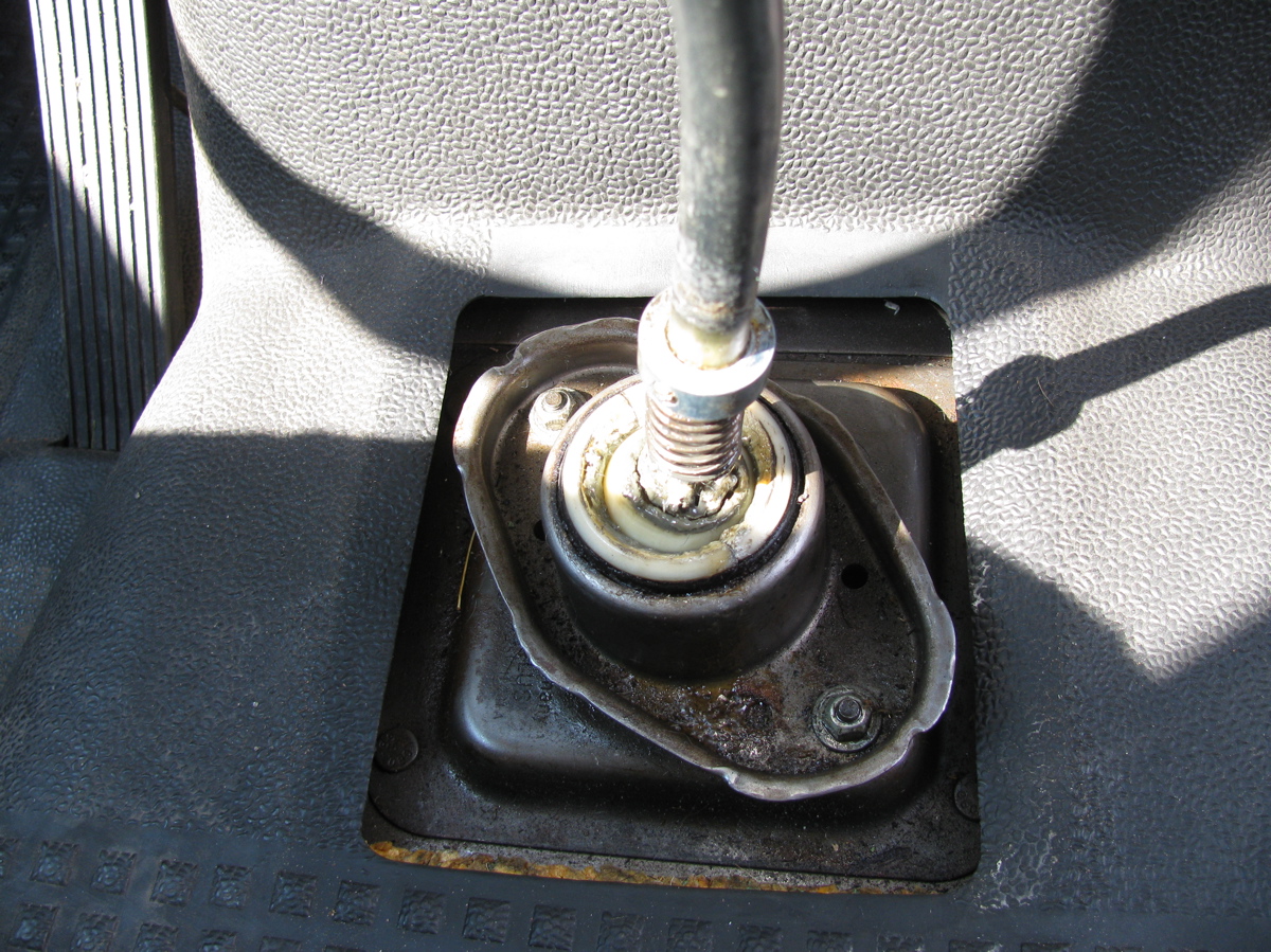 I’ve been noticing that I sometimes have  a little difficulty shifting into 1st and 2nd. Spraying grease on the exposed wear points on linkage under the van makes the difficult shifting go away for a while, so even I got the message that it needed some attention This diagram shows the linkage, my van has neither the shift linkage protective tube, nor the rubber boots protecting the rear bushing.