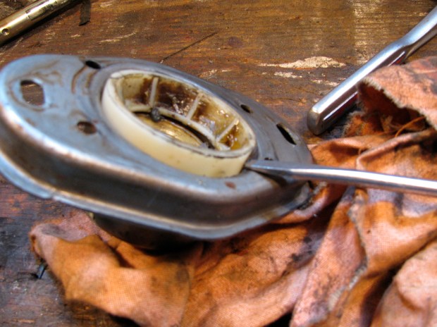 Before taking things apart, I sprayed some paint on the works so I could put it all back together in the same orientation.
