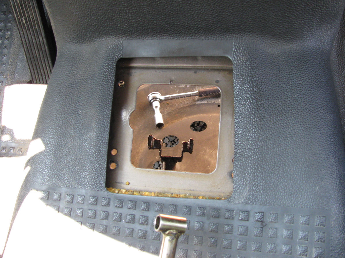 Now you can get back into the van and pull up the plates and shifter, and take it to the bench for disassembly.