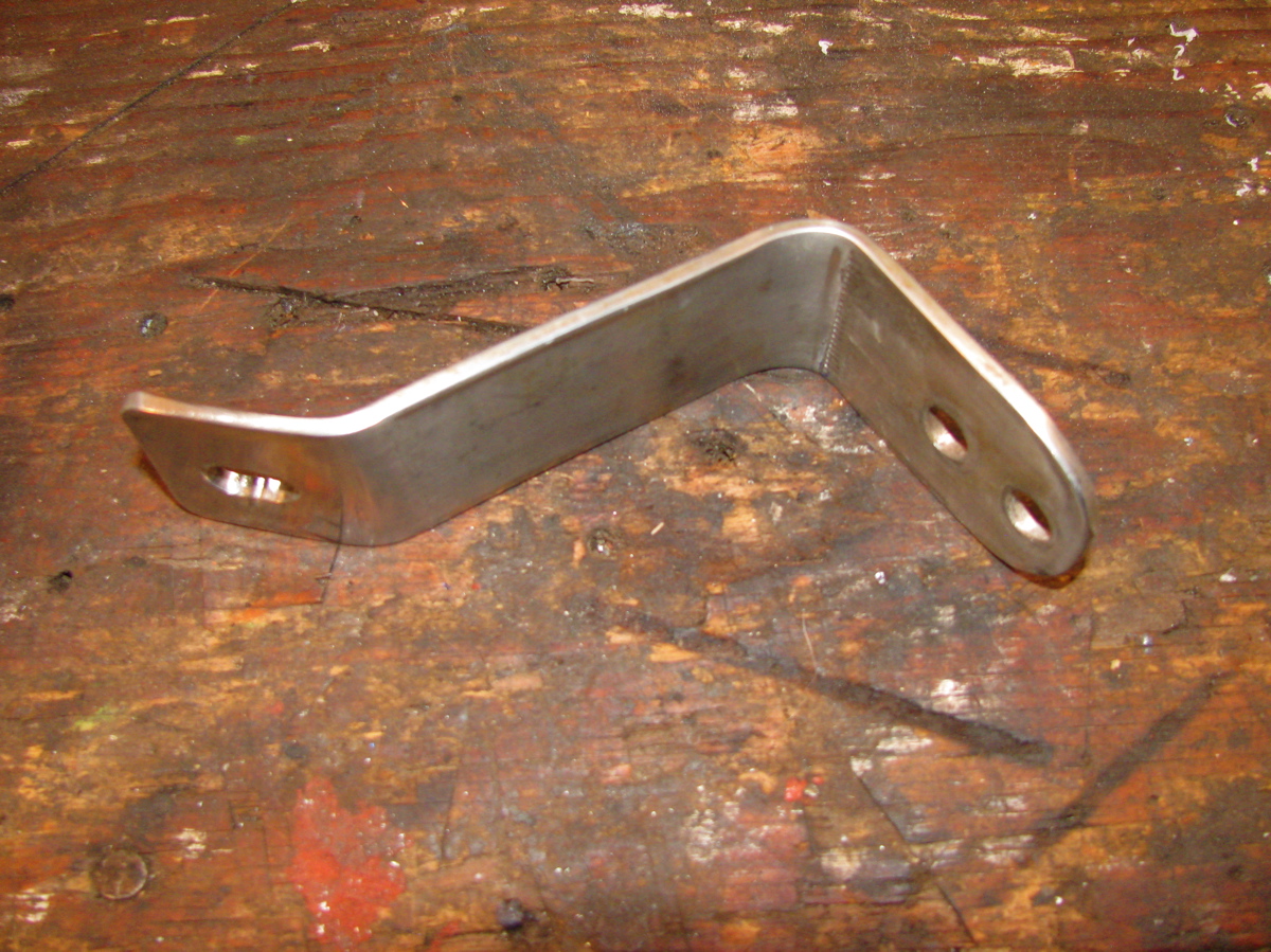 I want to put an auxiliary back up light on my ’86 syncro but never have found an attachment method I liked. That is until Brett H. told me about how he did it, so all credit for this bracket idea goes to him. I used scrap stainless stock I had in the workshop (hence the double holes shown) and I have an old bumper that I could do trial fittings on. Pretty simple bracket, easy bends.