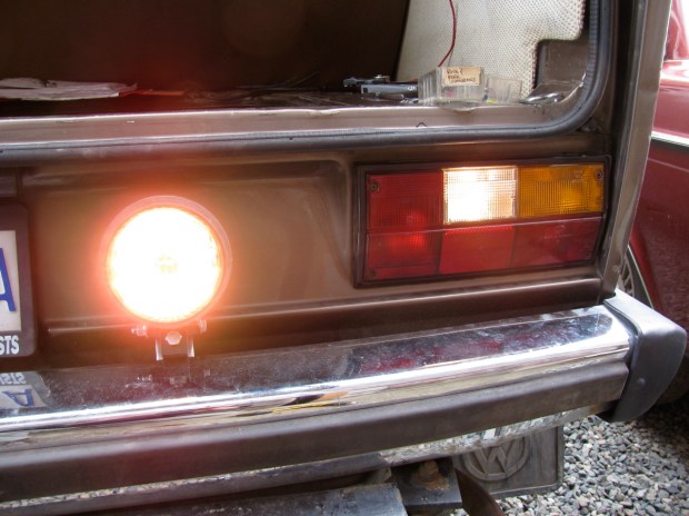 I also put in an old back up beeper I had on my ’82 westy. I was a good thing to have when my son was young and I got used to it, so now it’s on the syncro, just lying in front of right hand side tail lights.