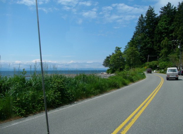 The road climbs moderately until you get onto the bench lands. The road when I travelled on it was dusty and in places muddy. I can see how it could be quite messy and difficult in wet weather. Follow the meandering road as it heads roughly northward toward Jesmond. The Fraser will be to your left, down out of view, but the other side is visible. Then the road turns north east, away from the Fraser towards Kelly lake. There is a small campsite at the lake, Downing Prov. Park. Continue on the Jesmond road, through forest and you might come across a road branching off to the west. I think its the first road on the left. If you want take this road for a more scenic route.