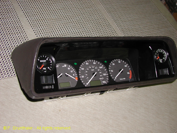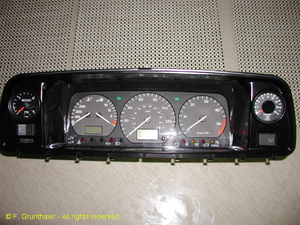 On the choice of cluster…. Well to start with, I have always thought (going back to March of ’82 when I placed the order for Westfalia for factory delivery) that the instrument cluster was a tacky design. The fake molded sensor lights particularly irritated me! I later years, I added the tach, the oil pressure warning circuits, the VSS speed sensor and redesigned the warning light package to give right and left turn signal lights, added cruise control lights, finally adding multicolor LEDs to the fake center section to monitor radiator fan speed, intercooler fan speeds, fog and driving lights and A/C control parameters. But I never liked the look of the thing.