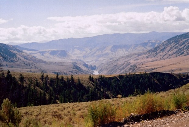 We then turn north east up Big Bar Creek until we get back to Jesmond road. Turn left and drive north. You’ll get to an intersection, to the right (east) will take you to Little Big Bar lake (forestry campsite there, was nice until the trees cut down due to pine beetle kill) and further east is Big Bar Lake Prov. campsite. But we are heading northwest, on and on until we get to the Dog Creek/Canoe Creek road. Turn west and down that valley to the village of Canoe Creek.