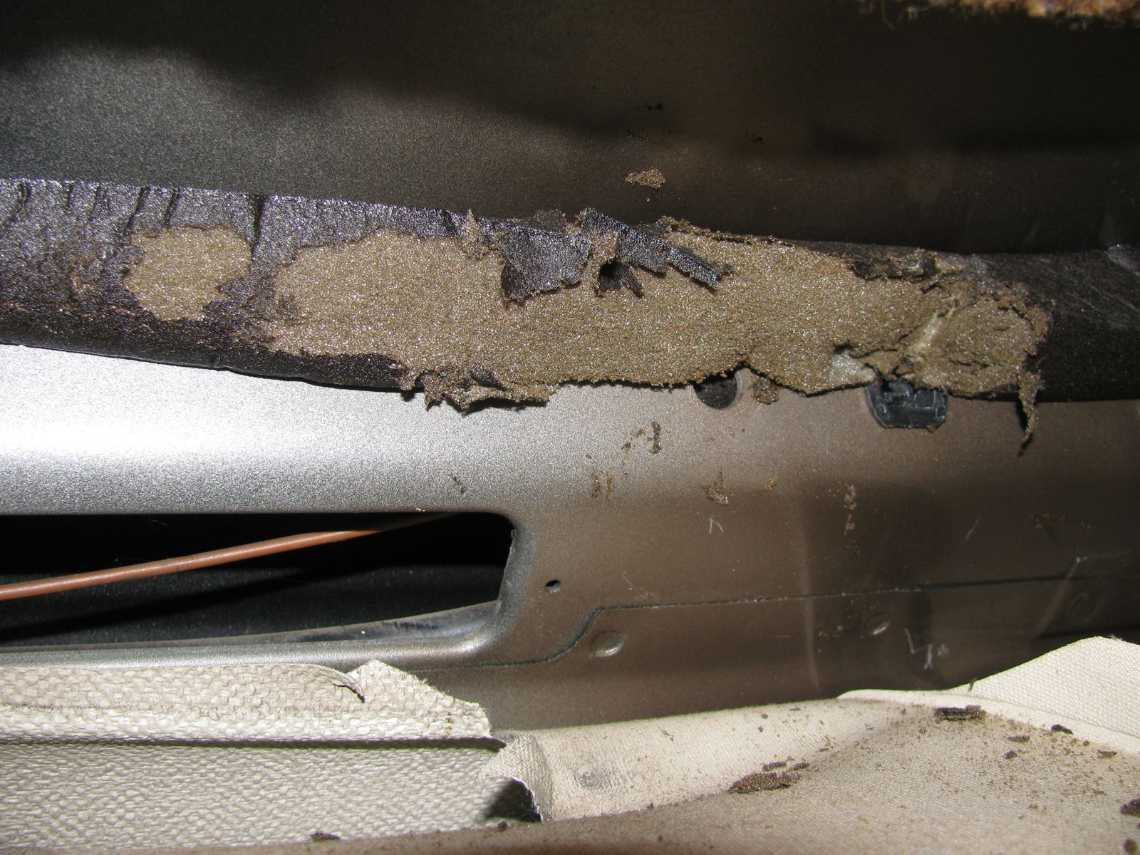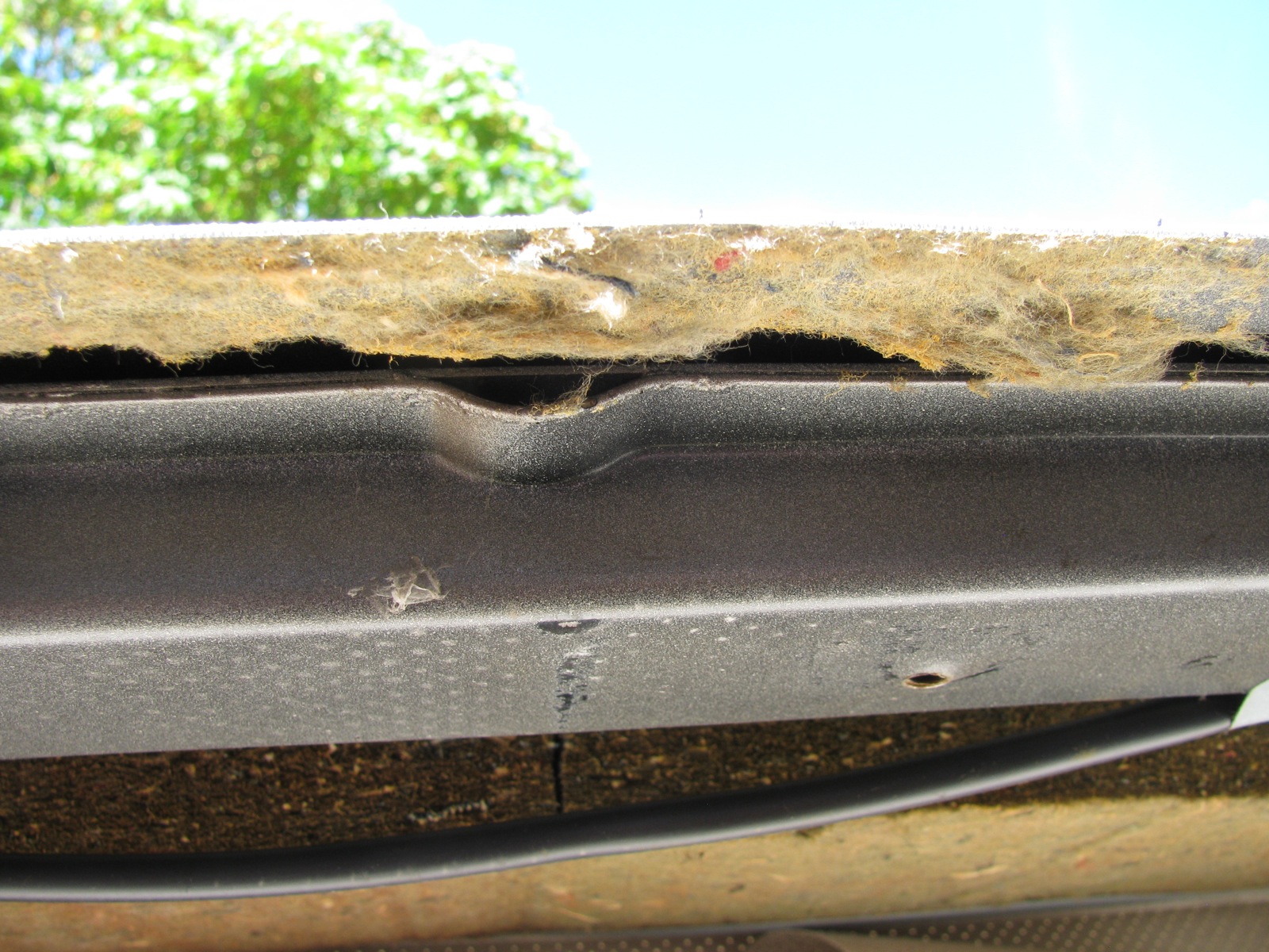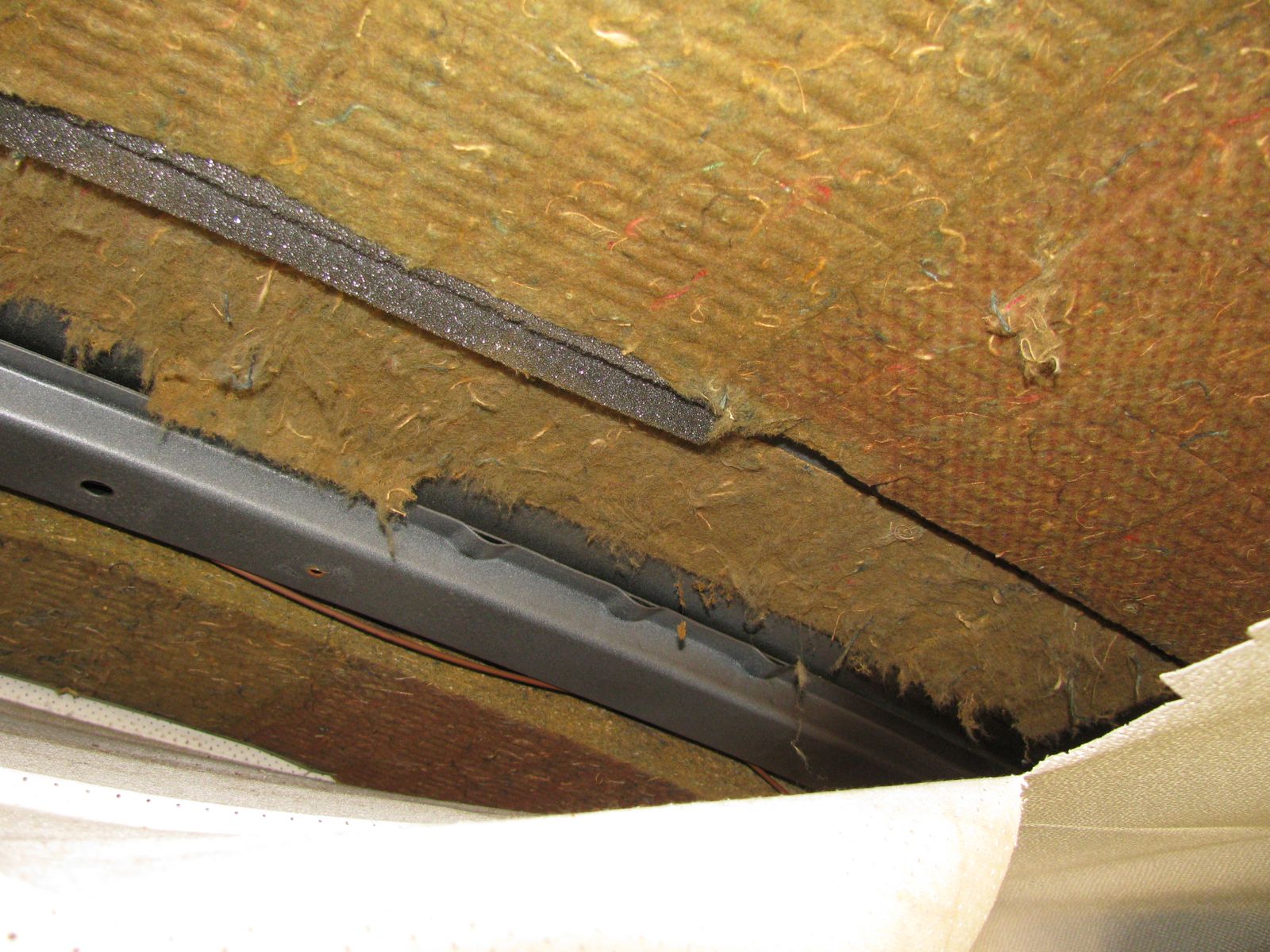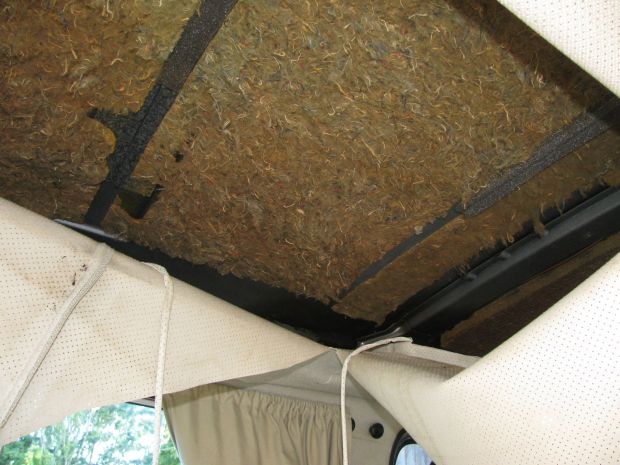 I attacked that awful insulation above the old headliner with a scraper and a vacuum cleaner.