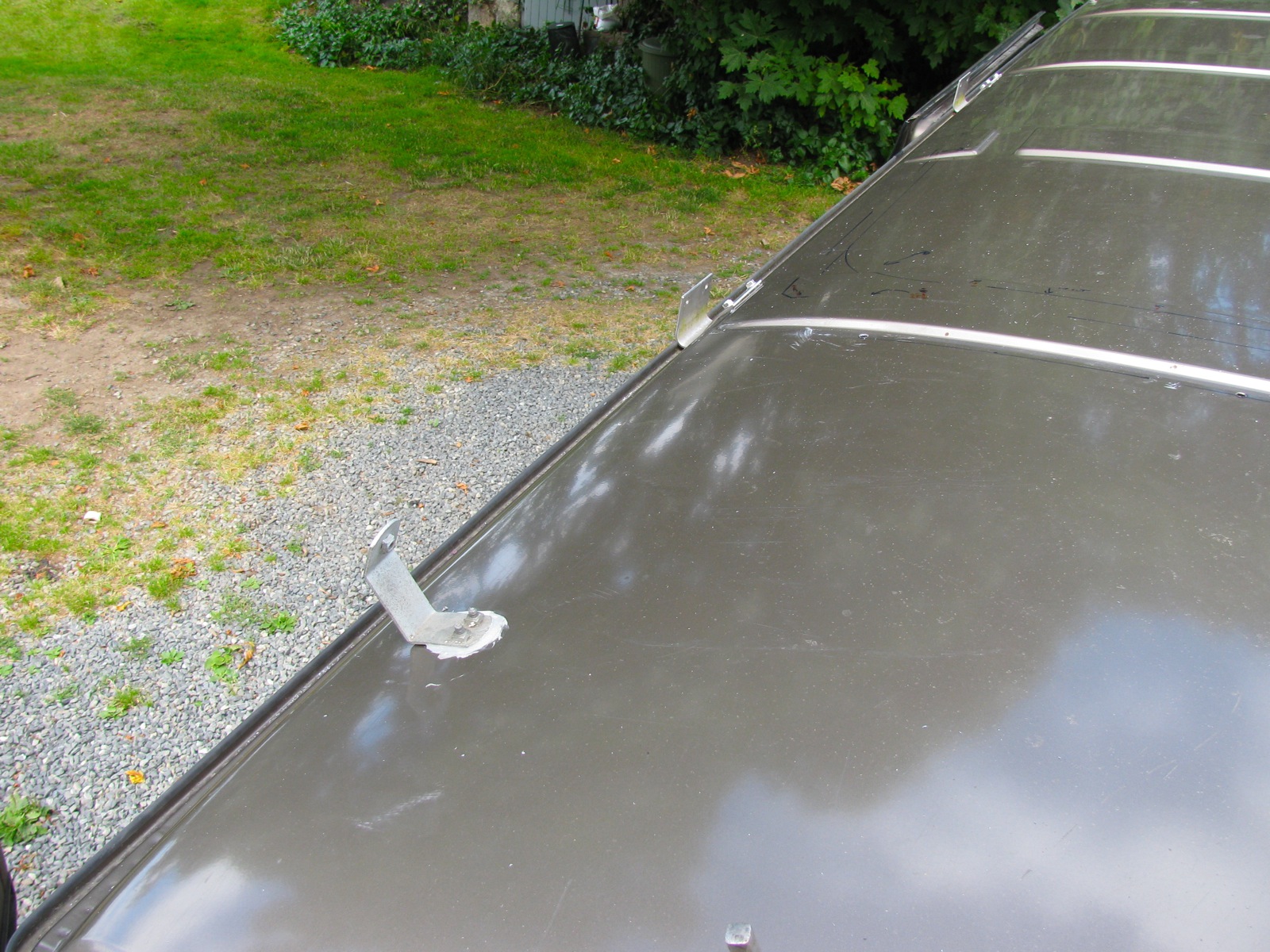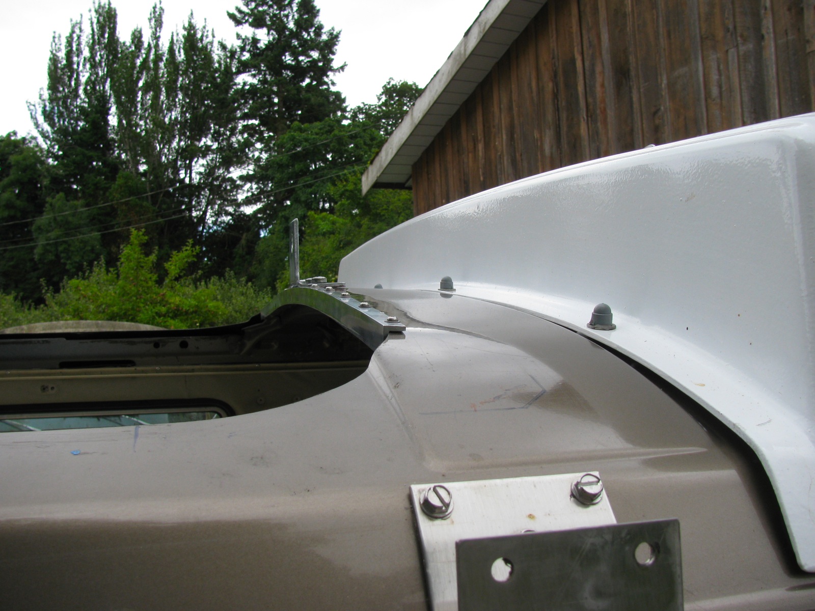 The side brackets went on smoothly (note, I used dum-dum mastic under all the brackets and on the heads of the bolts).