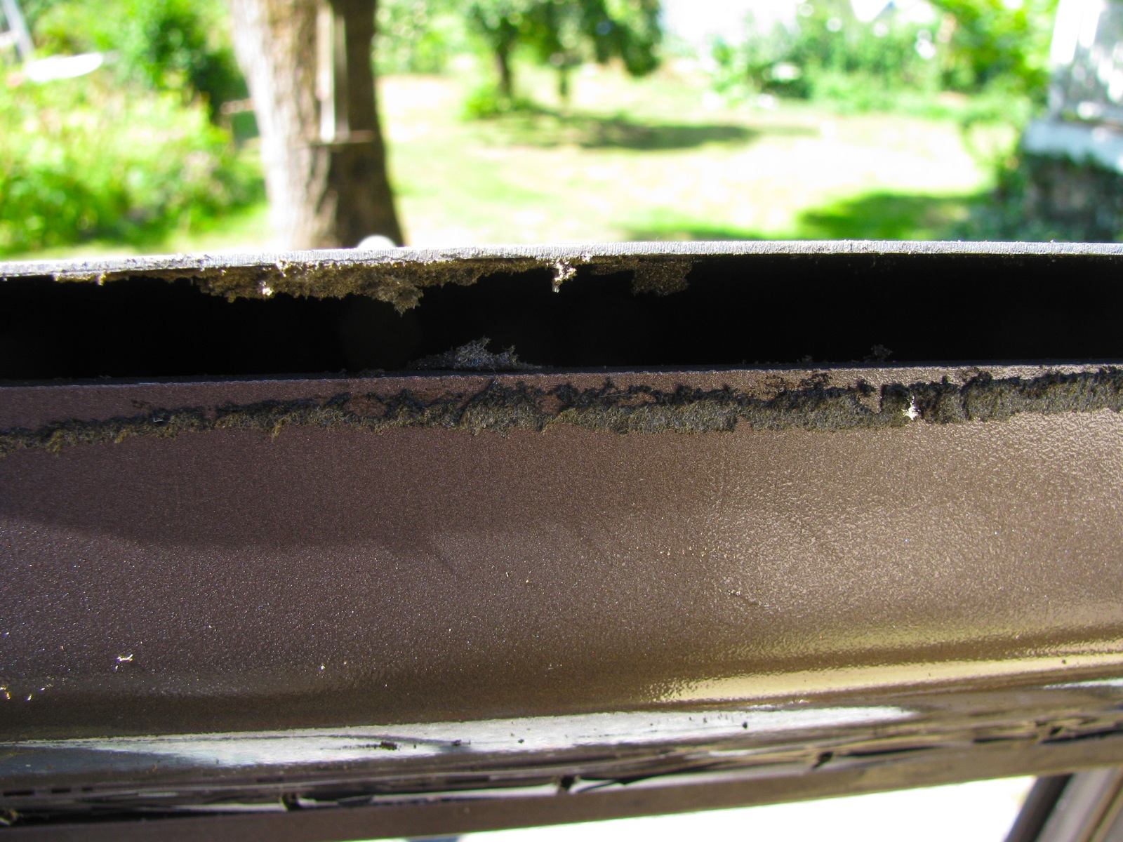 I can get the rest of that degraded sticky foam out now. In the westy roof, the box section (which double as air ducts) is welded to the roof between the cross members, in the passenger van it is not, and the gap is “sealed” with that foam.