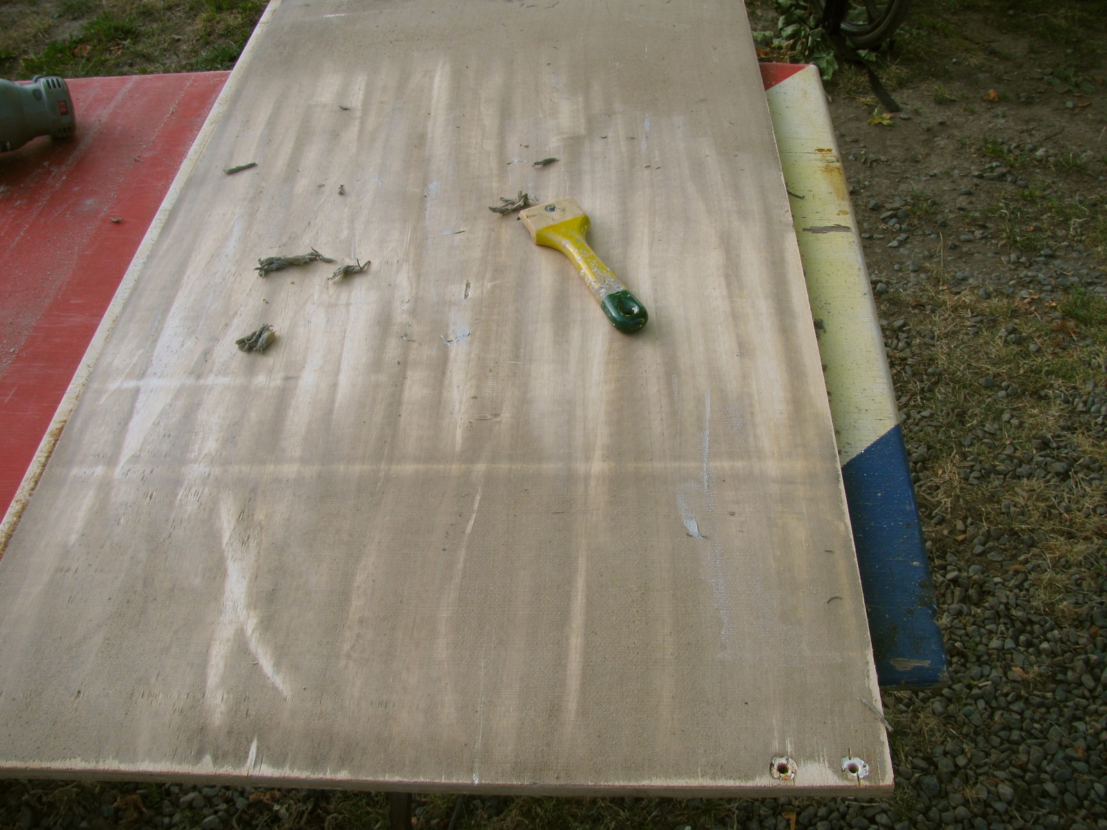The big section that is bolted to the roof is really not visible when the sleeping pad is in place, but I still wanted it cleaned up and sealed with something. Again I turned to Sikkens Cetol 1. Following pics are self explanatory.