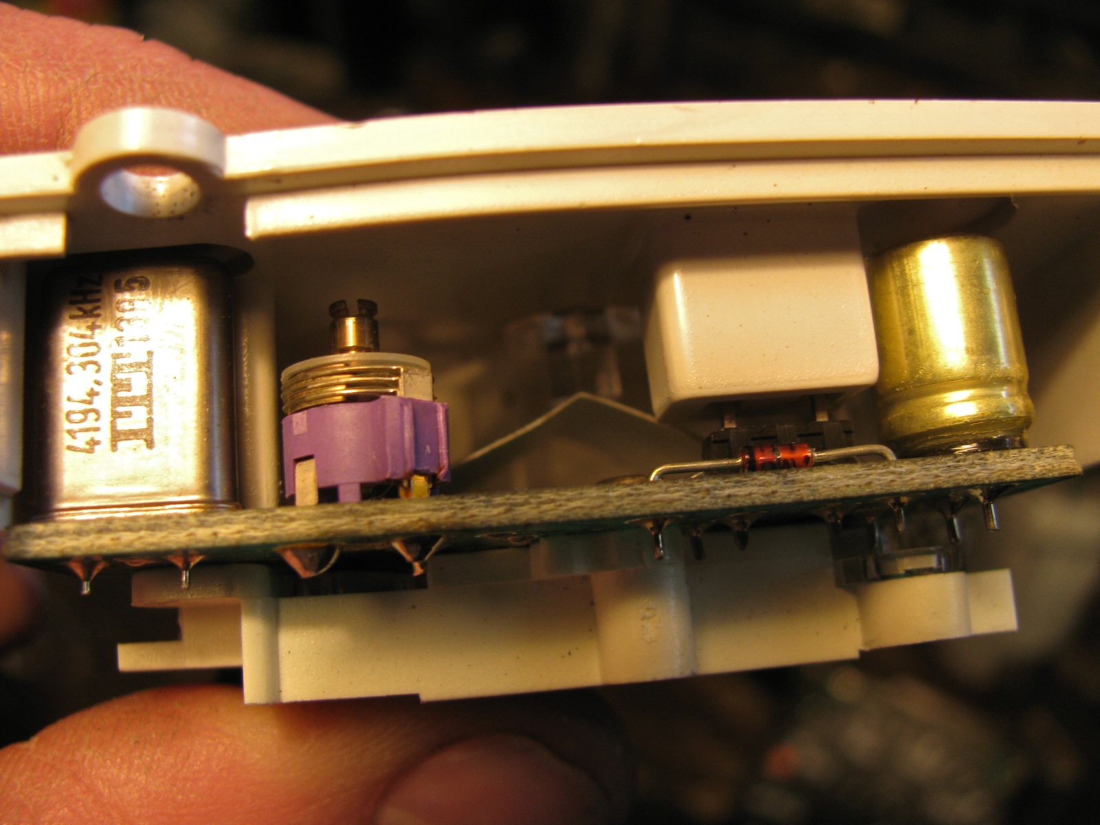 Clock apart, some adhesive backed aluminized foil stuck in to reflect the LED output to the 2 light pipes on each side of the clock face.