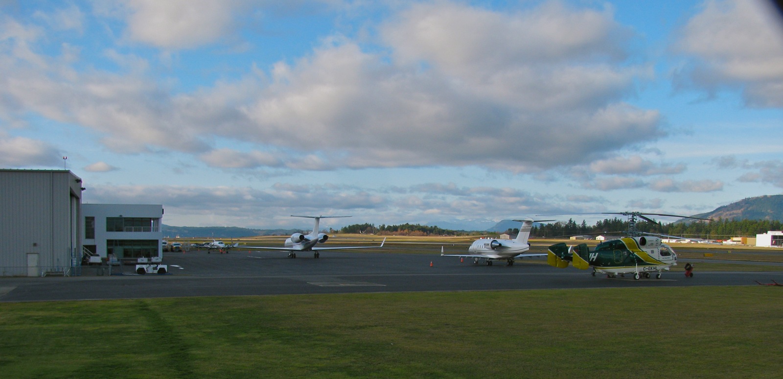 Maybe Angus will ID the jets? Update: he did – Challenger 604 on the right, and probably a Gulfstream G450 on the left.