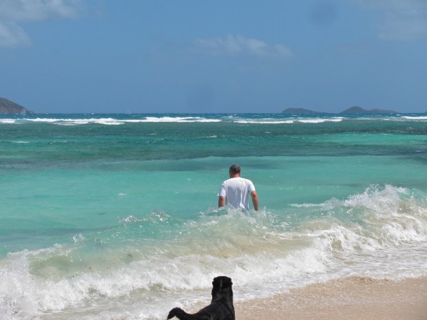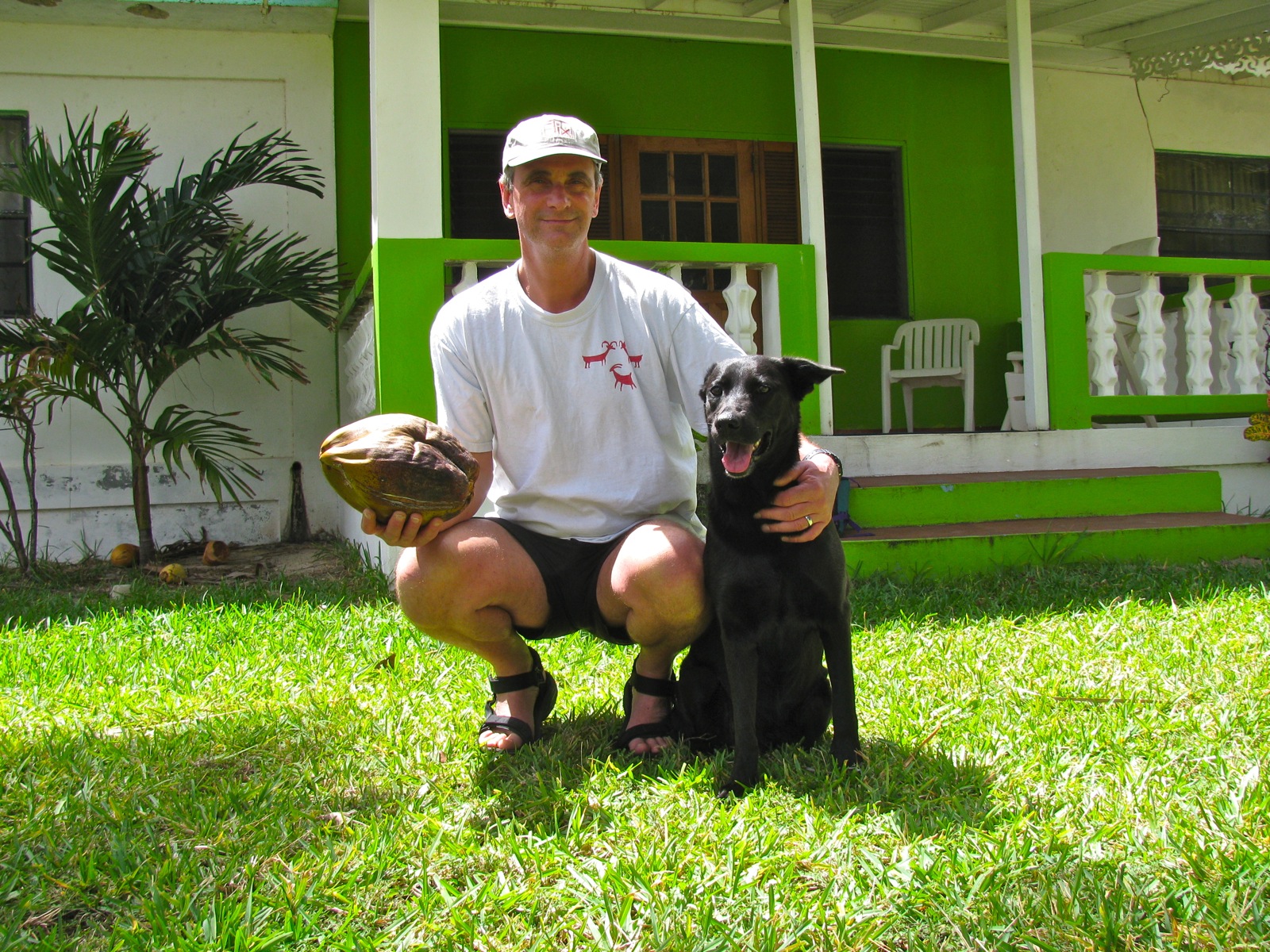 Caught the fast ferry from St. Vincent to Union Island yesterday, arrived here about 6 pm. Spent some time today looking around the island a bit, checking out the cottage friend Stephen rented, and having lunch (conch stew and rice). A day of firsts for me – first time touching the water of the Caribbean, first time seeing a coconut palm, picking fallen coconuts (most were dry, one still a bit green and had water inside), first time eating conch. I am quickly turning from the whitest guy on the island to the pinkest.