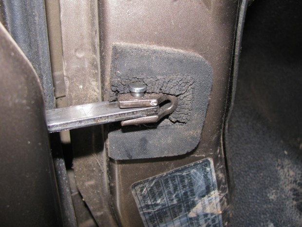 Removed and the broken end on the other side. The remainder of the strap, the part attached to the door jamb and held on with a pin and circlip arrangement was removed when I snapped the strap.