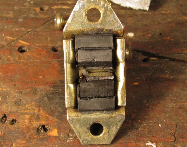 Addendum: In the comment Jon asked if the check strap could be adjusted to give more resistance. I can’t see how that could be done, perhaps Jon’s mechanism is broken? Here are more pics of the “resisting elements”, the hard faced rubber bits that pinch the steel strap.