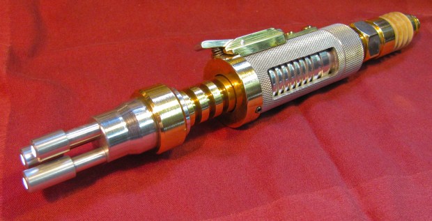 I was asked to make a copy of  “The Master’s Laser Screwdriver” for a Dr. Who parody. Here it is, a pretty crude and liberal interpretation. BTW, the lights do come on when the front section extends (spring loaded).