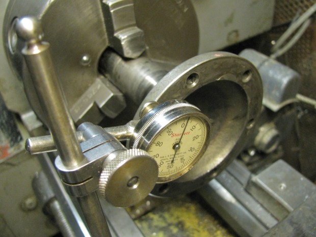 Hmmm….without going to the books, how about make a couple of equal diameter disks, chuck one in the bottom of the jaws gently but enough to take out the slack in everything, and then offer the other one up to the jaws and see what if any clearances you get. Bell-mouthing happens from holding work in the tips of the jaws, either by simple wear or by straining them.