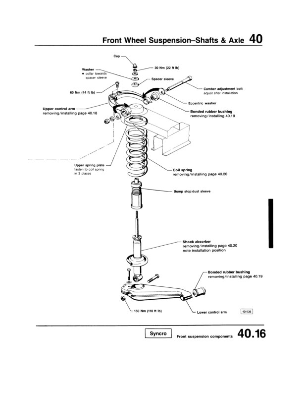 those Powerflex bushings look good. I was interested in the install instructions on Chris’ site (http://www.t3technique.com/t3-research-notes/syncro-powerflex-upper-control-arm-bushings.html). I noticed that the UCA was a snug fit on van when taking UCA off, and the new bushings “looked” (I should measure with remaining bushings) the same length as old ones. Putting UCA back in with same eccentric spacers was about the same snugness as before. But now I wonder if it is too snug? Bentley gives max. space measurement (0.5mm), but did I overlook any warnings about “too tight”? (no – no warnings about that)