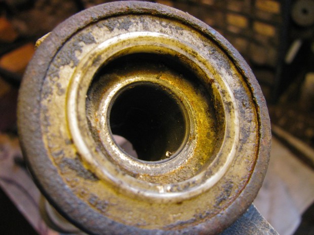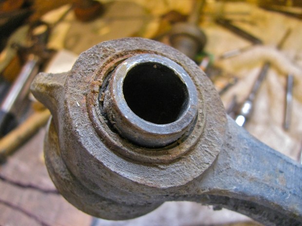 Now getting the old bushings out. I don’t have a press so I used a bit of aluminium tubing, a biggish socket, and an old 2WD control arm bolt, and a heavy hammer to drive the bushing out.