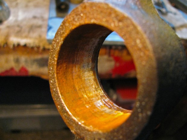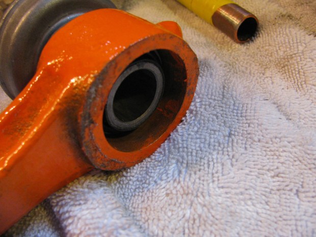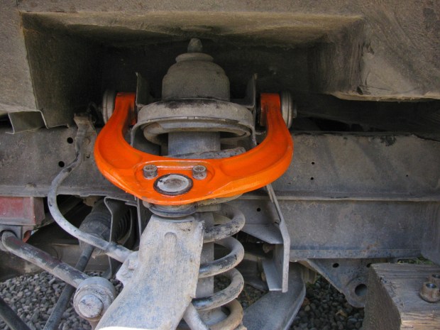 Part way in. Ok, you’ve noticed that I painted the UCA. A very casual crap job and wasn’t needed (original paint still good), but I had a can of orange paint and I thought it might look cool. Overnight drying time was not enough, paint still soft, came off here and there. Perhaps I should lock up the paint.