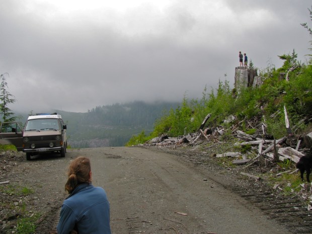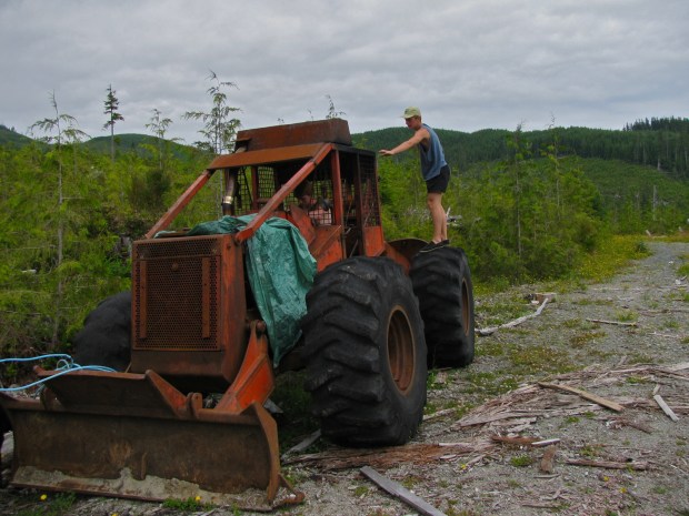 And off we went again, further west, looking for a spot on the Klanawa river and no, we didn’t want to camp under the bridge. We did swing past the spot on the Tsucowis that we camped at 2 years ago, but it was occupied. We went part way around Darling main loop, and took one spur that led down through an old (1960’s?) logged area and found a skidder. I’m thinking that someone took it down there to salvage cedar logs for shake block cutting.