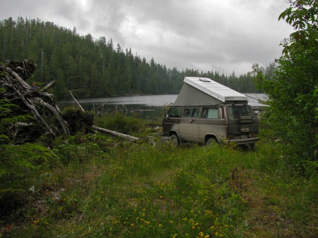 It was a lovely spot, virgin forest and clear water. At five pm we headed back to van, and then home. Van ran fine, but we were heavily loaded and the stock tintop syncro springs are not stiff enough for this sort of thing. Perhaps my old ’82 westy springs might be installed in the front and coil over shocks to help the rear?