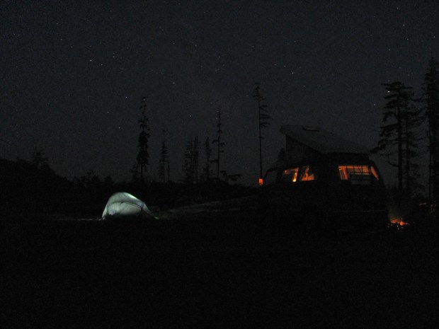 We had brought along the GoPro Hero 2 cam, and the only even close to worthwhile vid we shot was this less than exciting “vanagon in puddle” sequence on the road out of the campsite.