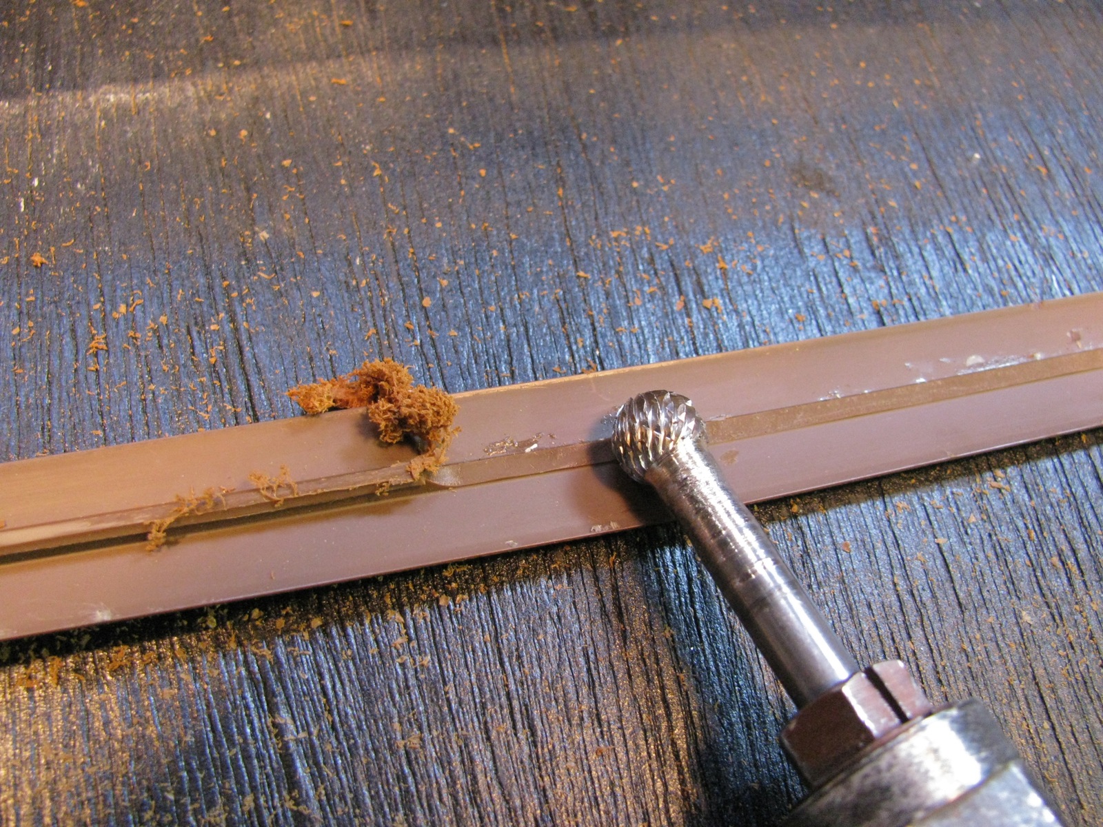 I took the T moulding off and went about hacking it up to install the leds actually in it.