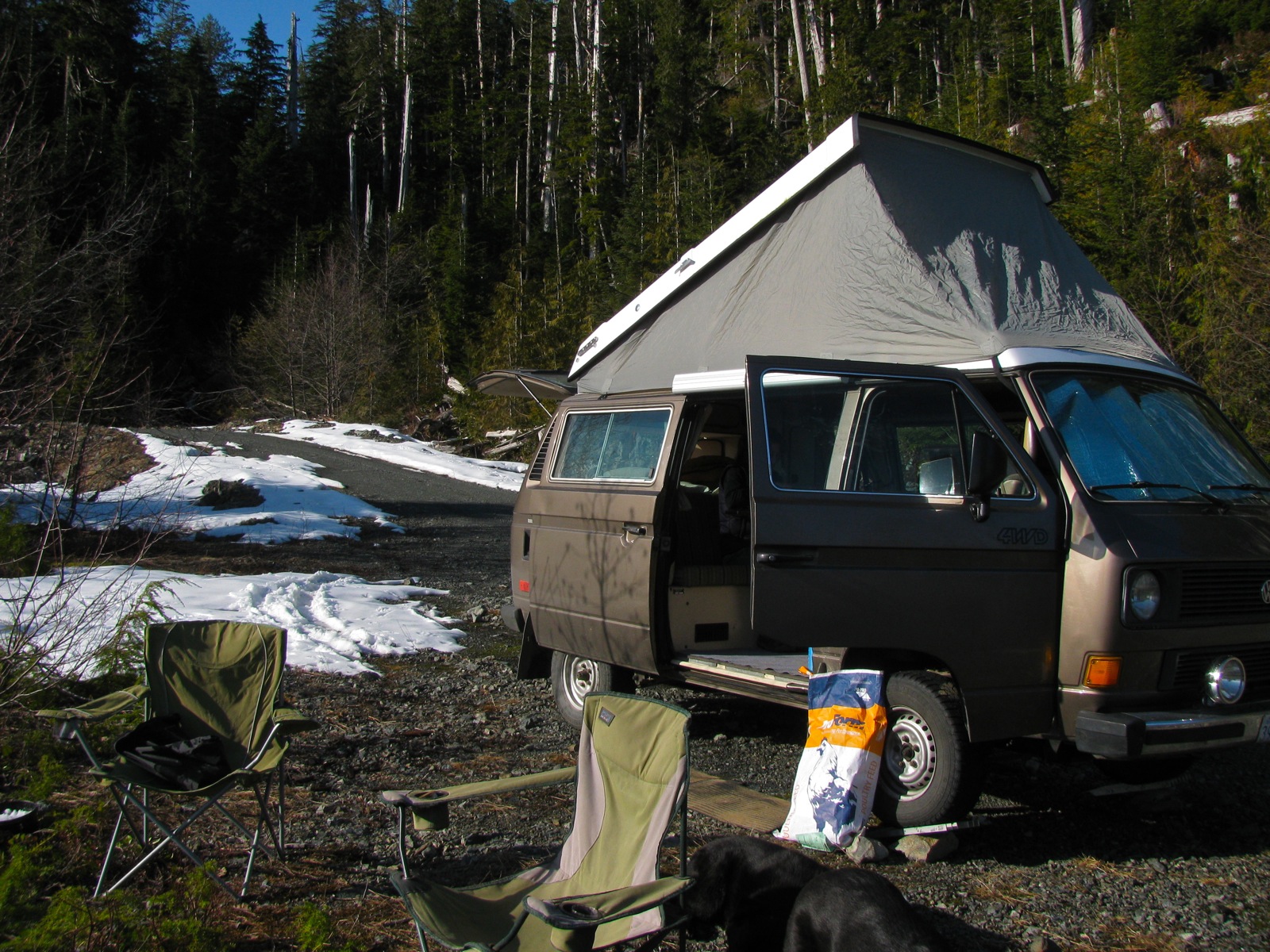 We had the Go-Westy rainfly up, and the Westy pop top insulation blanket installed inside. We also brought along the Olympian Plat Cat heater (not used when sleeping). The set up worked very well, and with the pop top vent cracked overnight, we have very little condensation on the windows in the morning. Must have had some sort of chimney effect going.