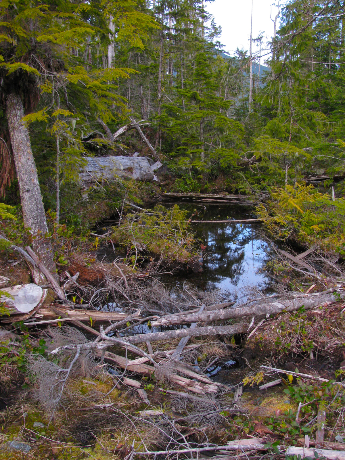 If you look closely you might be able to see the yellow shoots of Skunk Cabbage poking up at edge of the water.