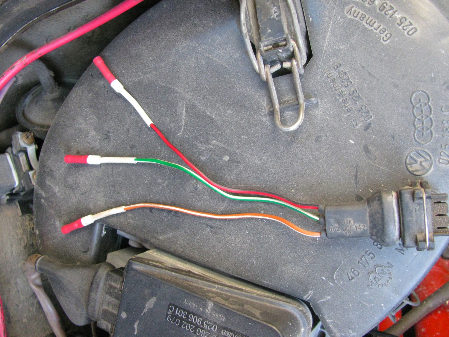 I had a spare connector, from an inline 4 Digifant engine, and I spliced it on. Butt connectors, dielectric grease, heat shrink, you know the drill.