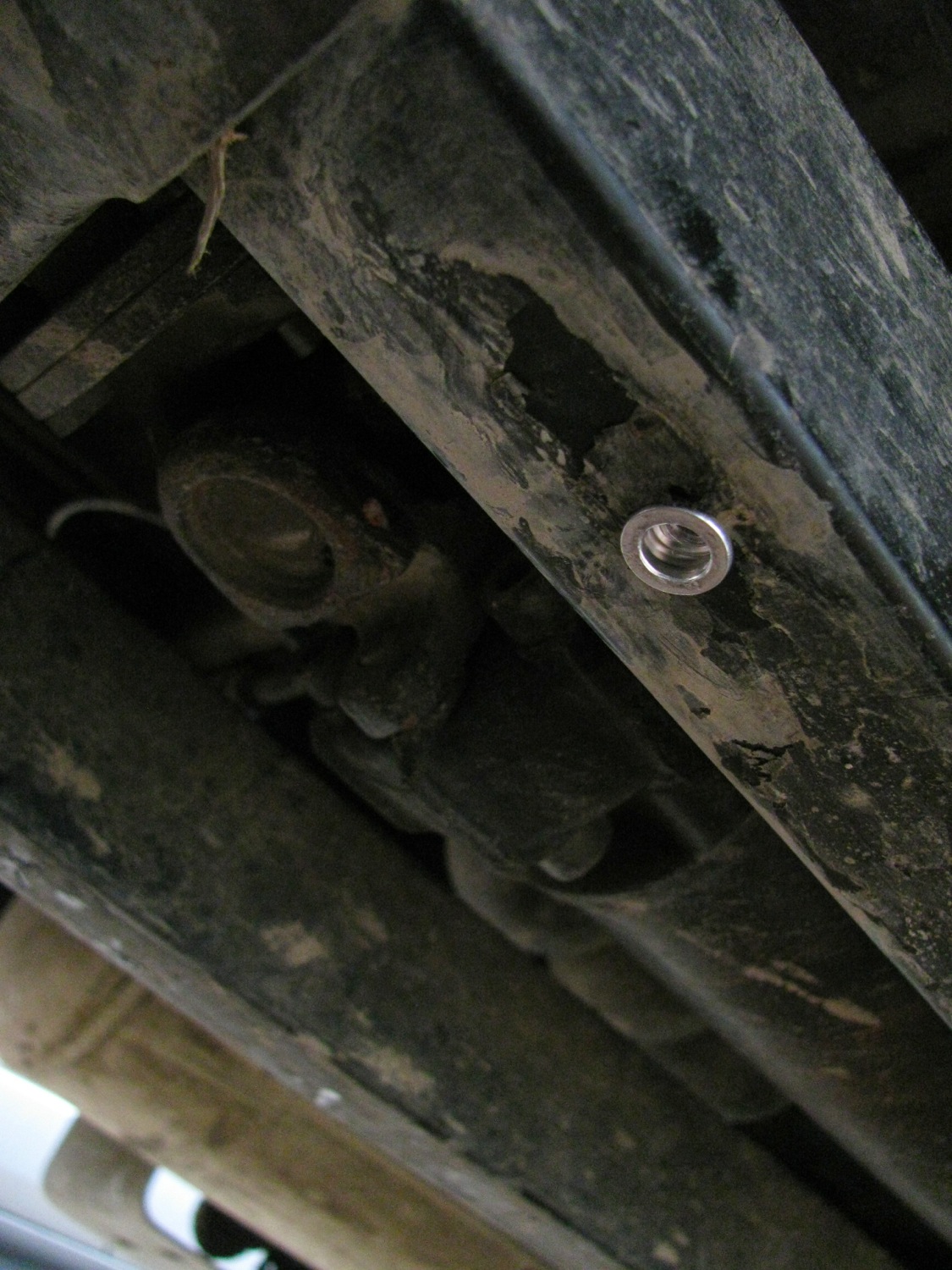 After a few more ruptured blood vessels all the inserts were installed. Oh I did spray some high zinc paint in the drilled holes before insertion of the inserts. Originally I had thought of counter sunk machine screws to attach the plate, but you know how it is with counter sunk screws, you have to get things perfectly aligned. I opted instead for these rather nice large (almost a truss head) headed stainless screws.