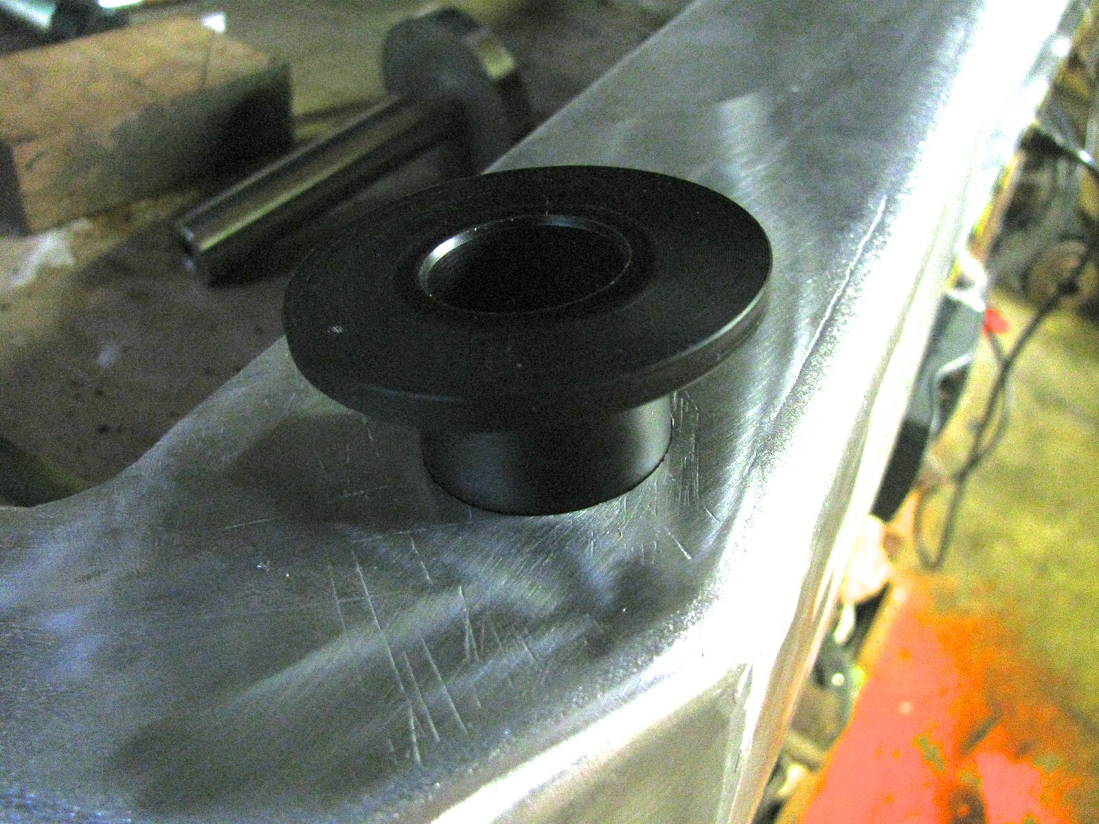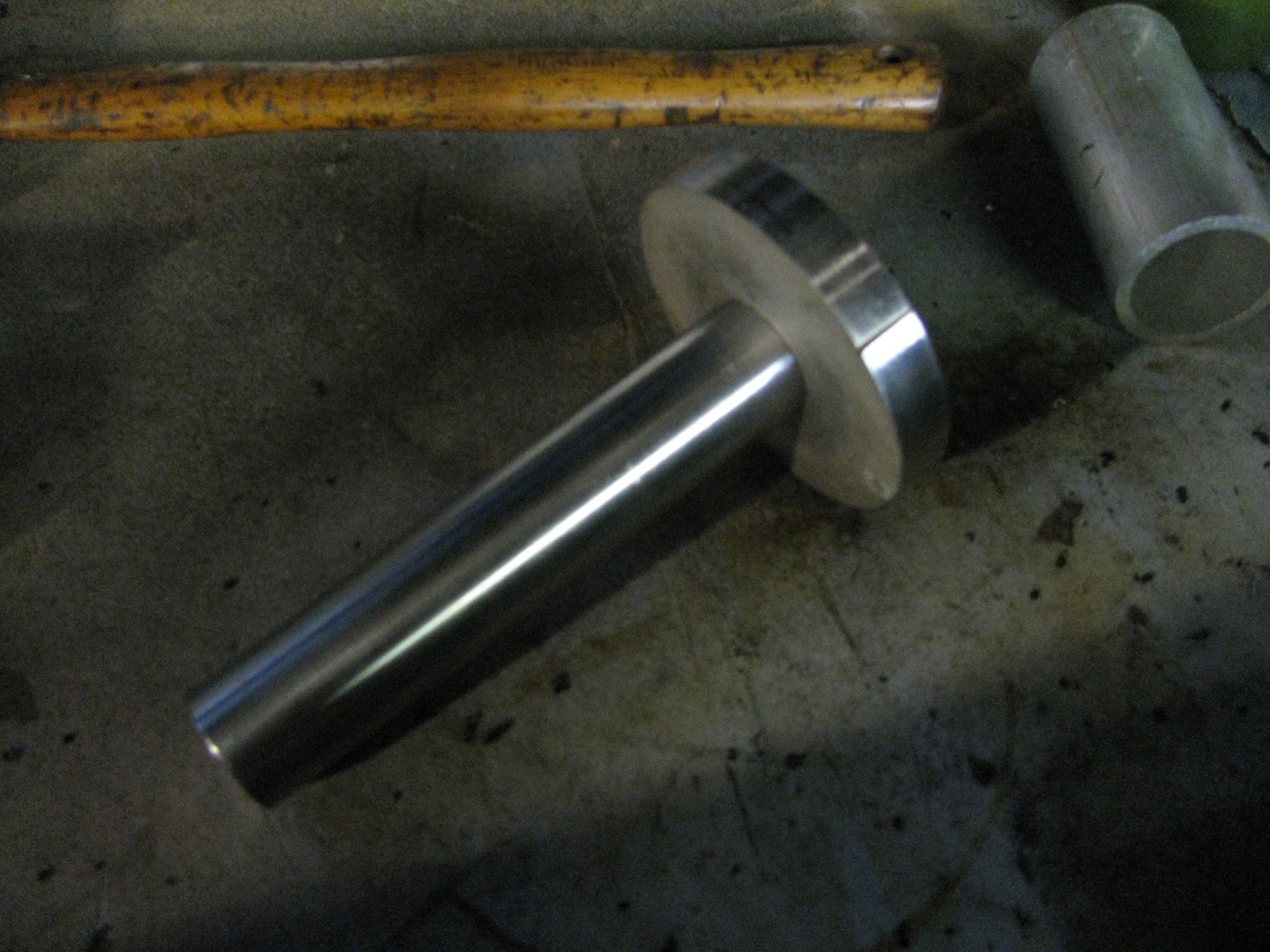 The shaft is a bit of 1″ stainless rod let into a bit of 1/2″ stainless plate, welded to rod on top surface.
