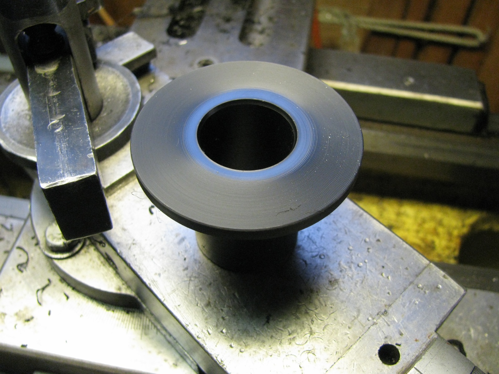 Skipping ahead (too lazy to rearrange how the pics were inserted), making Delrin bushings.