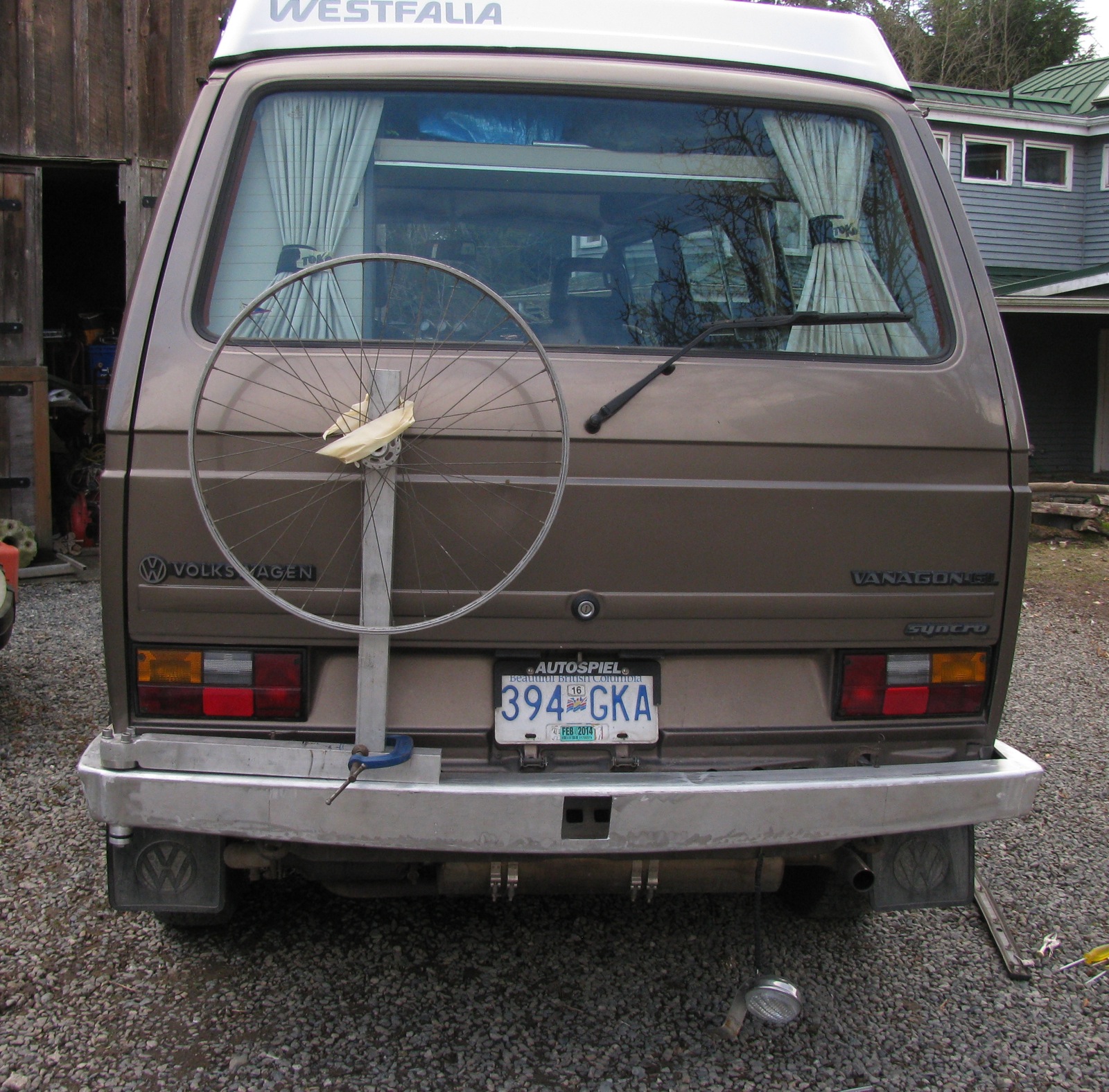 Looking good, Alistair. What’s your plan for the arm contacting the bumper under the weight of the spare? I have the GoWesty bumpers and spare tire swing-away and I like their simple solution: they drilled three holes in a small triangle in the bumper directly below the swing-away and popped 3 Delrin “buttons” into the bumper. So instead of the swing-away resting on the bumper, it rests on the three replaceable buttons. Spare tires are HEAVY! I can send you a pic if you’re interested.