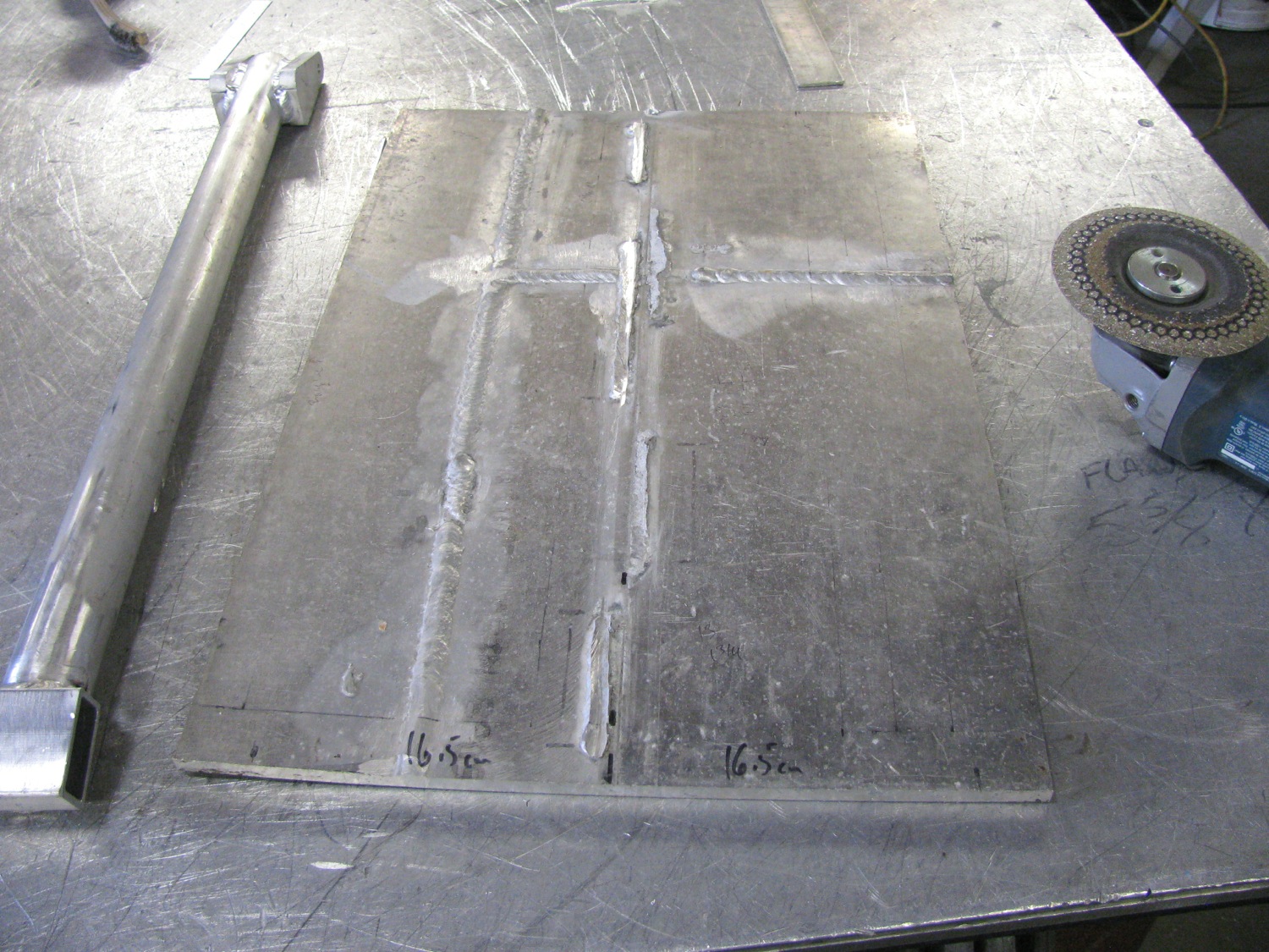 I did a full weld-out on the unpainted side. I welded it hard and fast so that the paint didn’t fume too much. I should have used the wire feed welder instead of TIG.