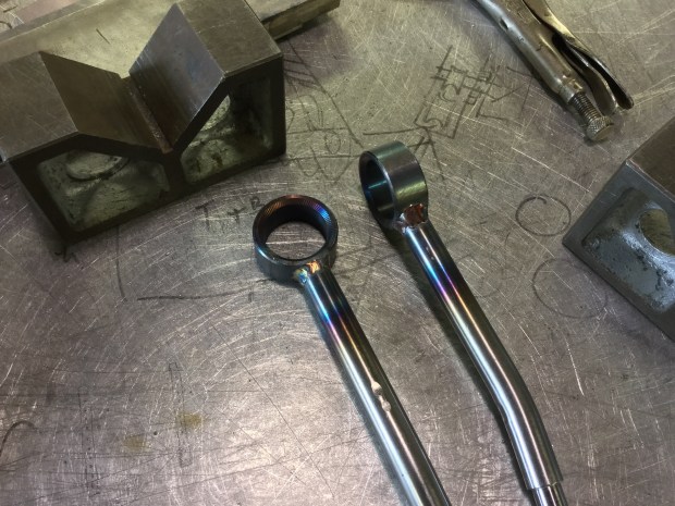 I bent them on a friend’s press using a quickly made set up that does leave some dimples in the bar. I think I took about 8 tons of force to bend them. I was shooting for 4 degree bend, but I went a degree or so more. I don’t think that will be a problem.