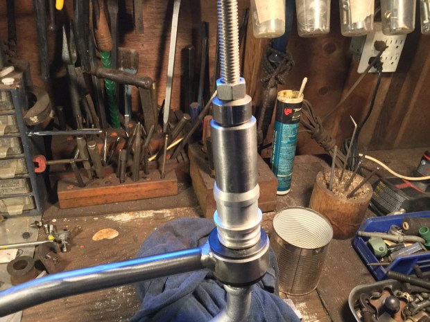 So what eh? Well now I made a bullet shaped tool, tapped for the 3/8″ bolt on the blunt end and tapped for 1/2 NC on the pointy end.