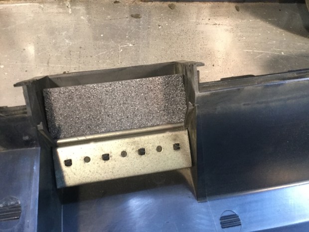 The heater core has a bit of foam around the sides and ends to seal it into its place. The old foam was, like the rest of the foam in the box, rotten. And I couldn’t get rid of the black on the core.