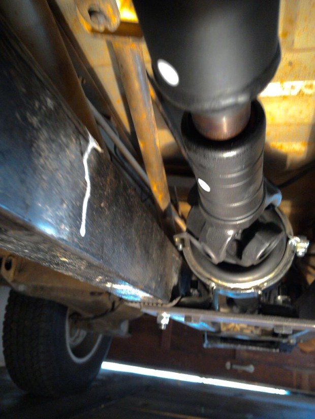 John B. sent along some pics of his new propshaft. He was having some difficulty in getting the stock set up running vibration free so he went this route.