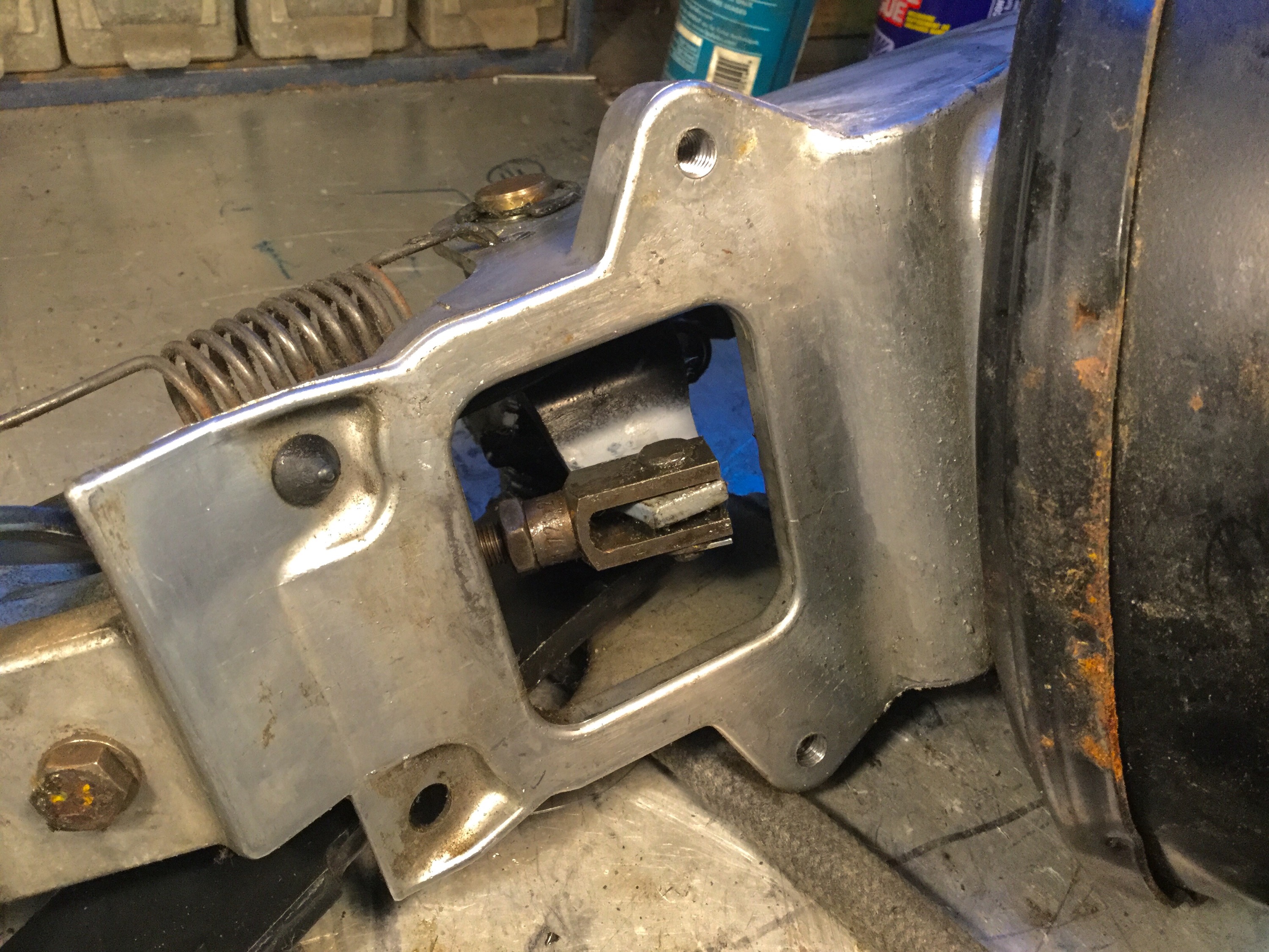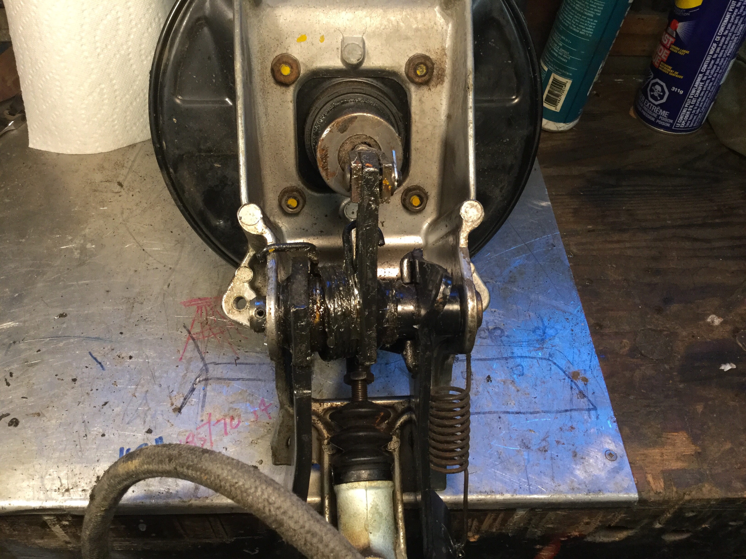 Well there wasn’t as much play in the clevis pin and yoke as I thought there was. But there was a lot of play between the rod that screws into the yoke and the cup it fits into in behind the master cylinder boot. There is that rod in the next pic, the clutch pedal removed from the assembly.