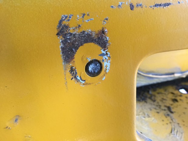 See? The hole isn’t as wallowed as I thought it would be. And the pin is in fair shape. I measured the pin, 7.95mm. I’m supposing the hole would have been nominally 8mm diameter.